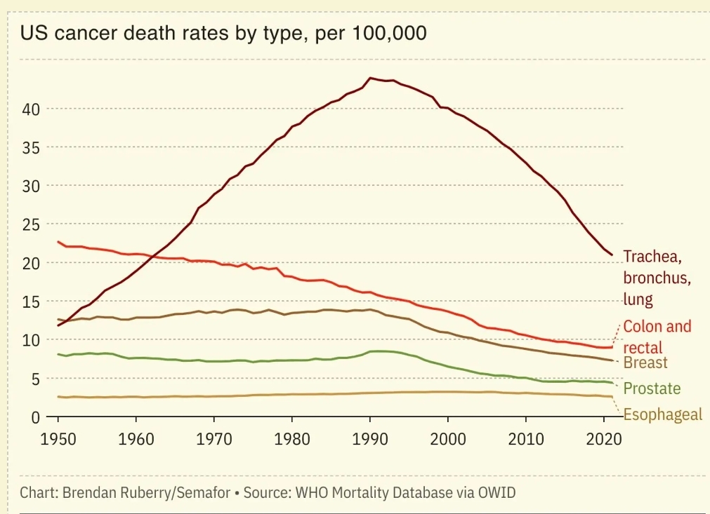 The immune system is no doubt always attacking malignant cells, whenever they appear, and if the immune system is not fully functional, then cancer will get going and aging will accelerate. Older age means a weaker immune system, therefore cancer is much less often seen in men and women under 30 years of age. There is now a clear increase in what medical scientists are describing as “early onset cancer” – cancer which appears in the prime of life, in the 30s and 40s. Since the 1980s, this early onset cancer has been growing at a rate of about 2%/year. It is a dramatic increase in prevalence. I would argue that is mostly a function of genetic diversity and inferior genetic material. I very much doubt that it has anything to do with exogenous assaults on cells. If anything, exogenous assaults on the cells of the body and brain have greatly diminished in the past 60 years or so.