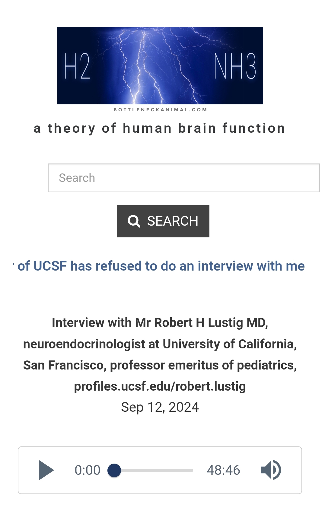 The human animal is the supreme bottleneck animal that is why we are so powerful... the Chancellor of UCSF has refused to do an interview with me