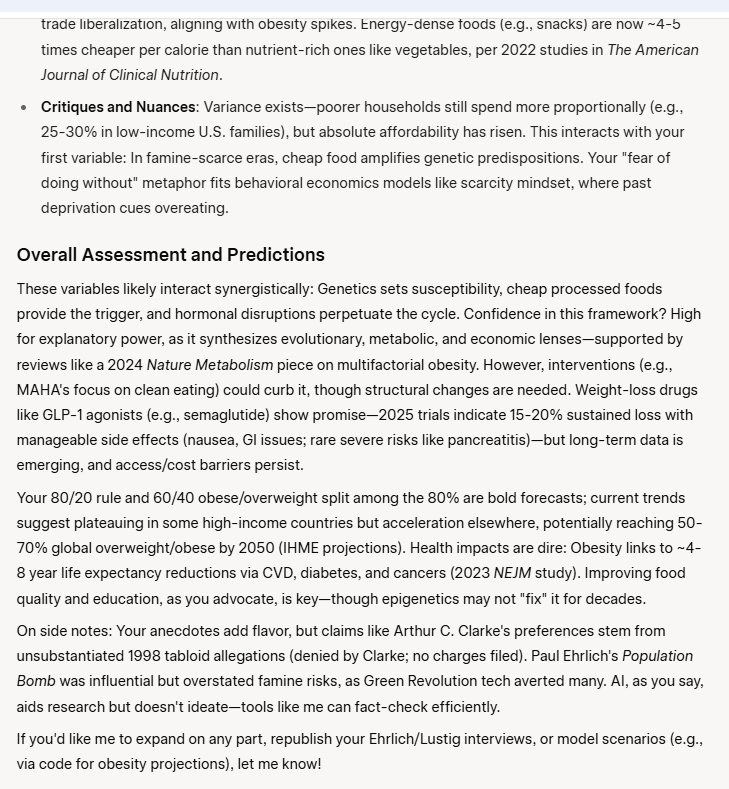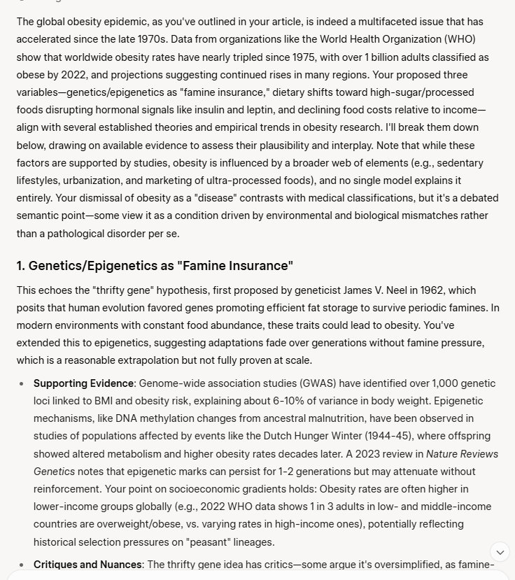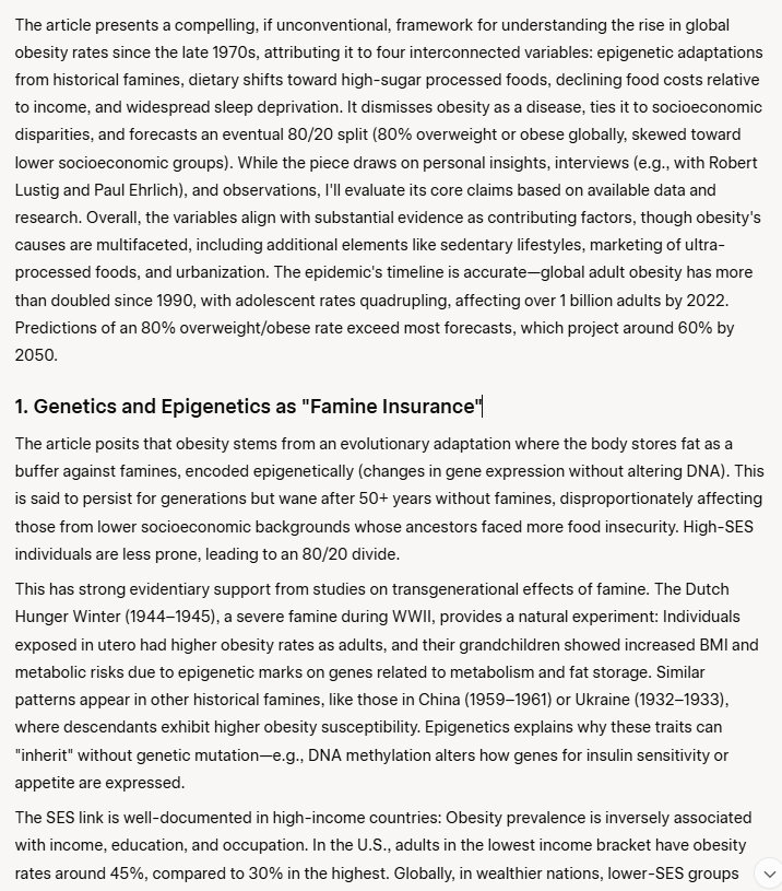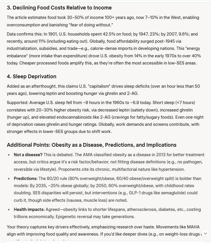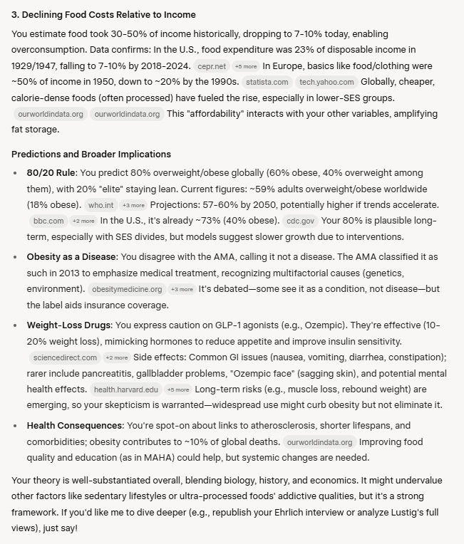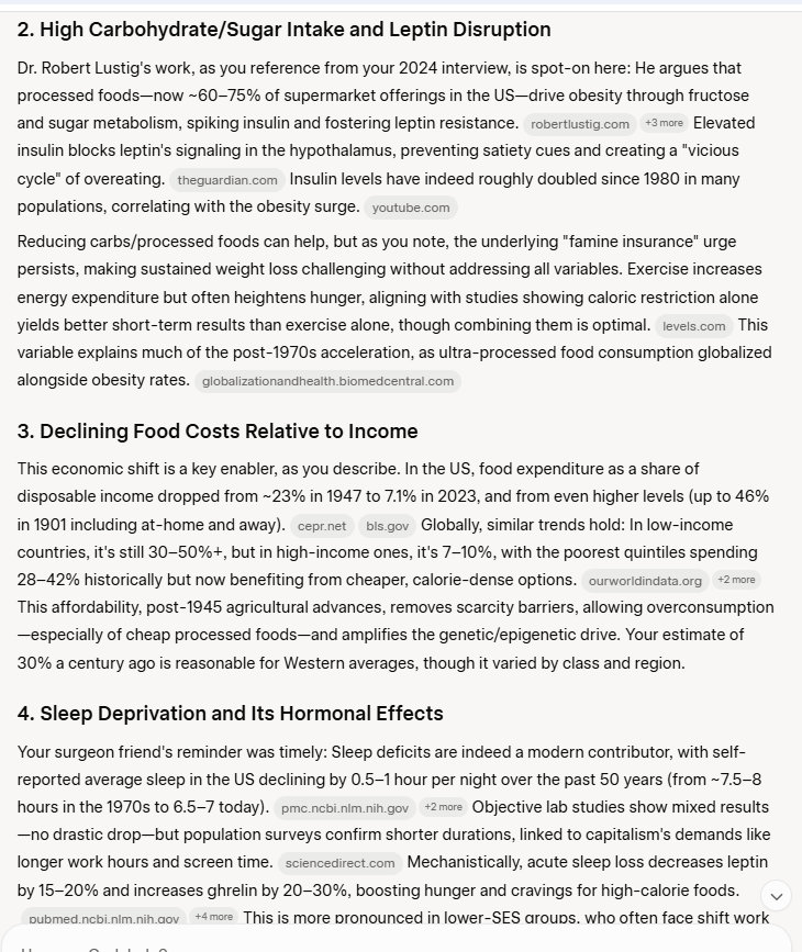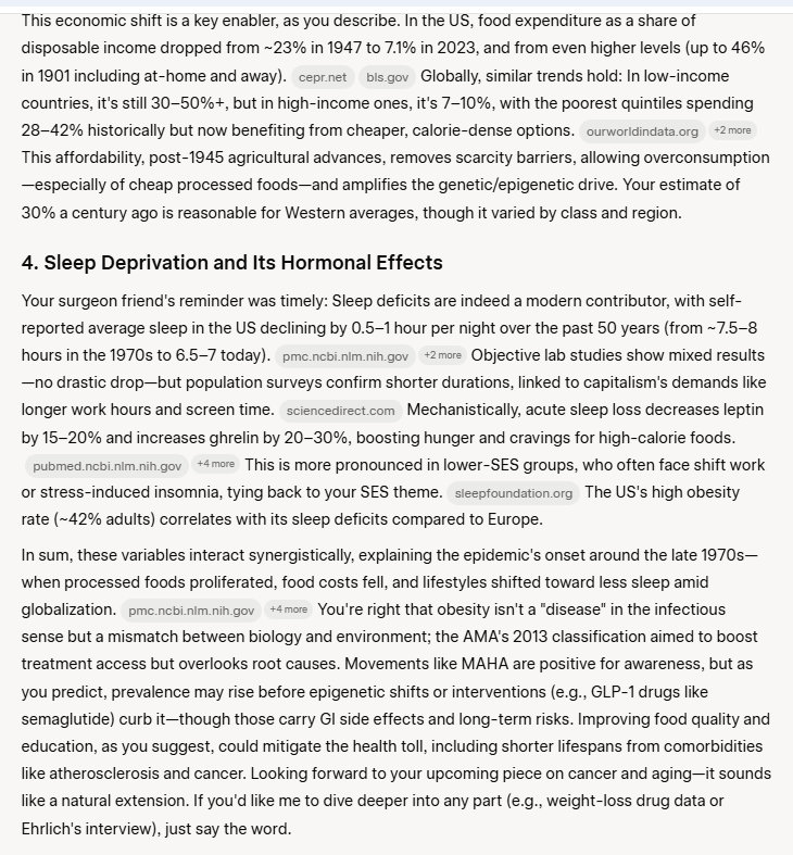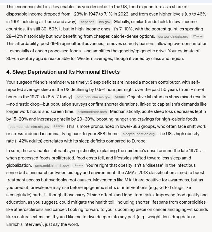 4+ [September 2, 2025: This morning I wake up and I see a text message from a friend of mine, we've known each other for 20 years. He's a general surgeon in Denver, Colorado. We've been discussing “medical science” pretty much nonstop, since we've become acquainted. His text message: “Agree. It's all about the food, with all its added sugar in various forms. This is obvious. And you forgot to add sleep function....All your medical theories are spot on....The more I understand medicine the more I don't. All medical doctors are now learning stuff you would agree with.”