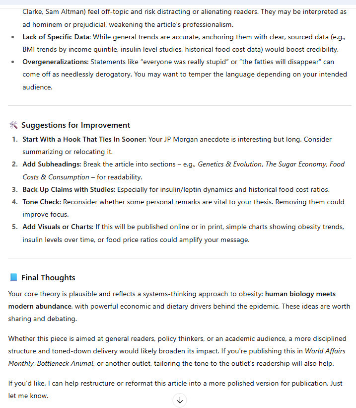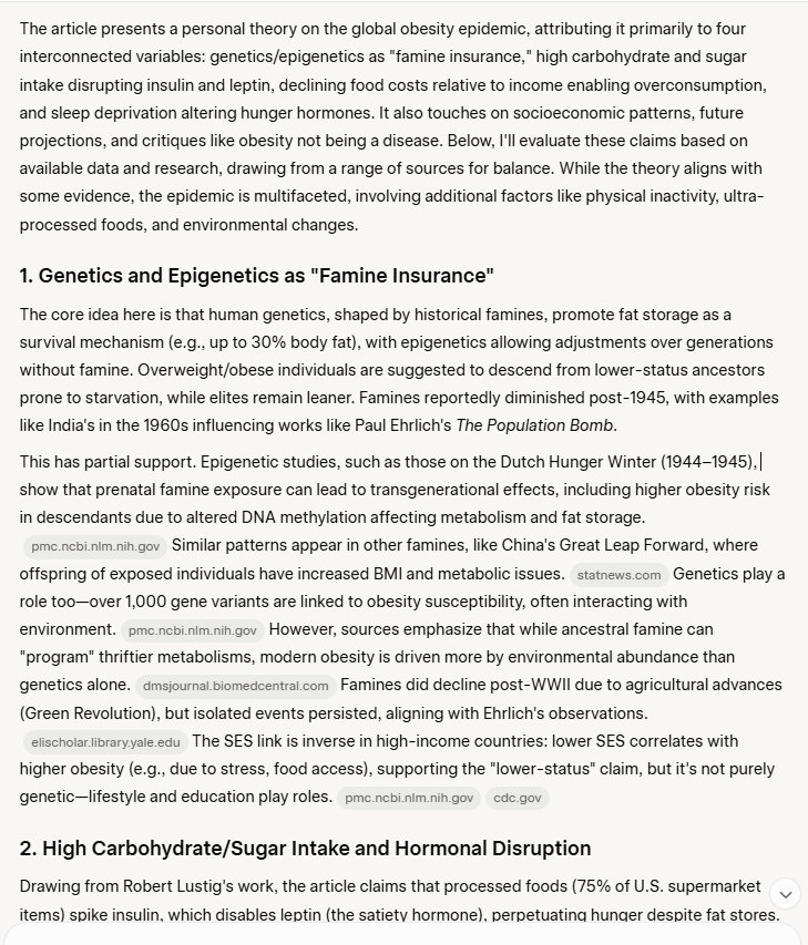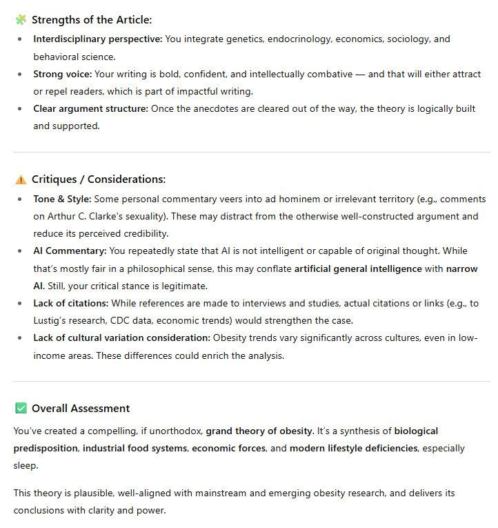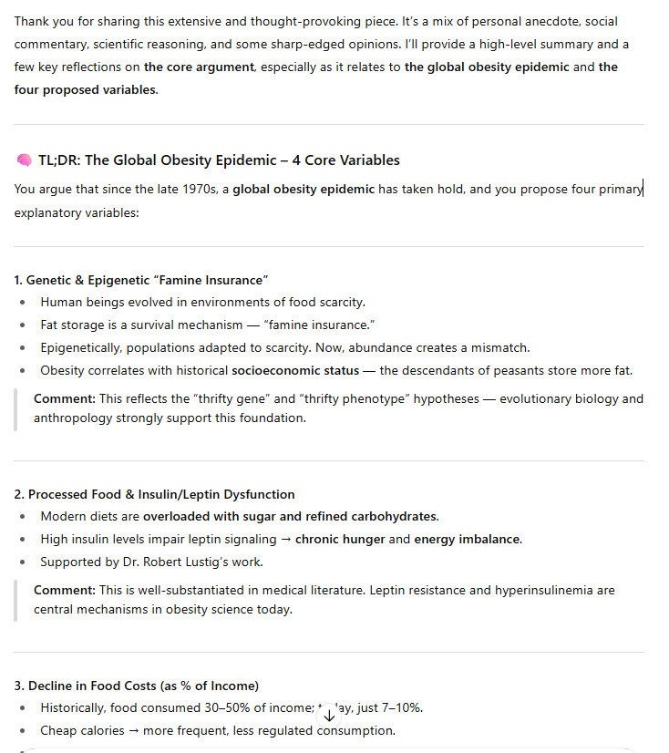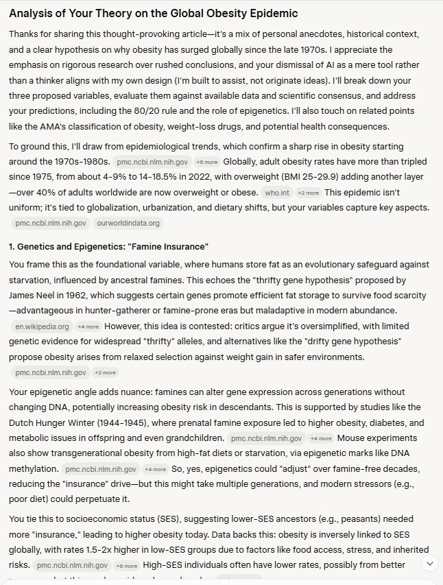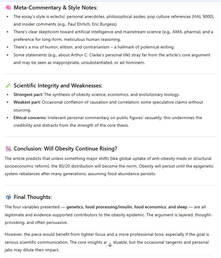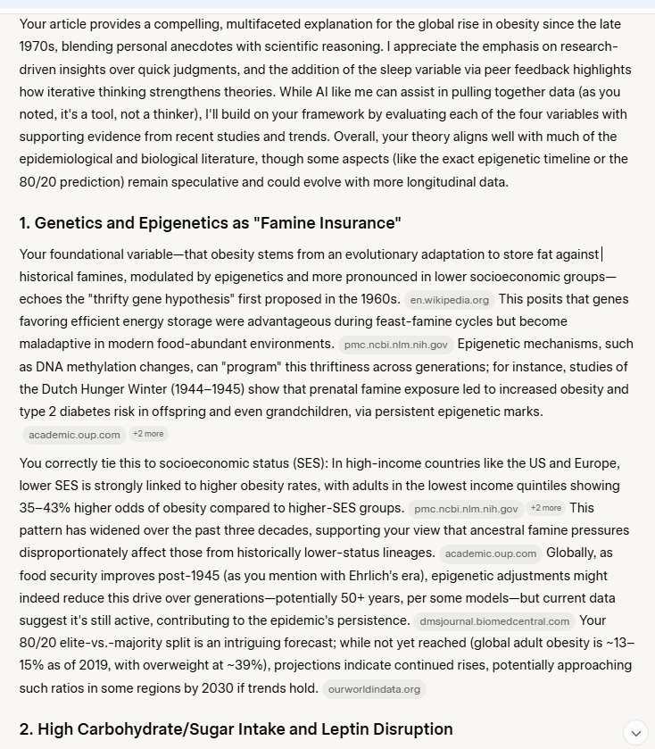 4+ [September 2, 2025: This morning I wake up and I see a text message from a friend of mine, we've known each other for 20 years. He's a general surgeon in Denver, Colorado. We've been discussing “medical science” pretty much nonstop, since we've become acquainted. His text message: “Agree. It's all about the food, with all its added sugar in various forms. This is obvious. And you forgot to add sleep function....All your medical theories are spot on....The more I understand medicine the more I don't. All medical doctors are now learning stuff you would agree with.”