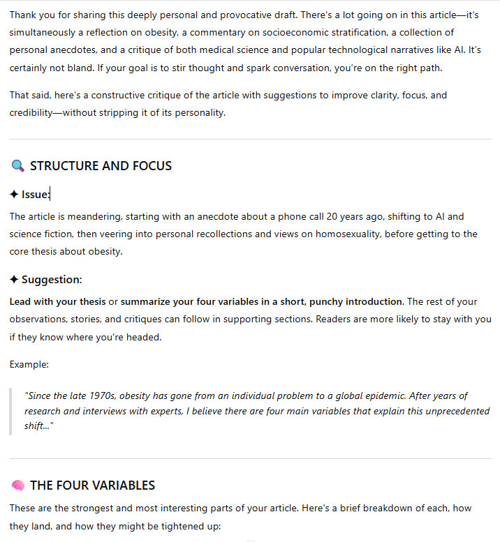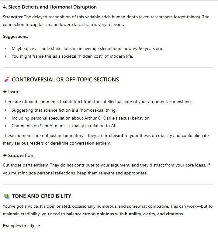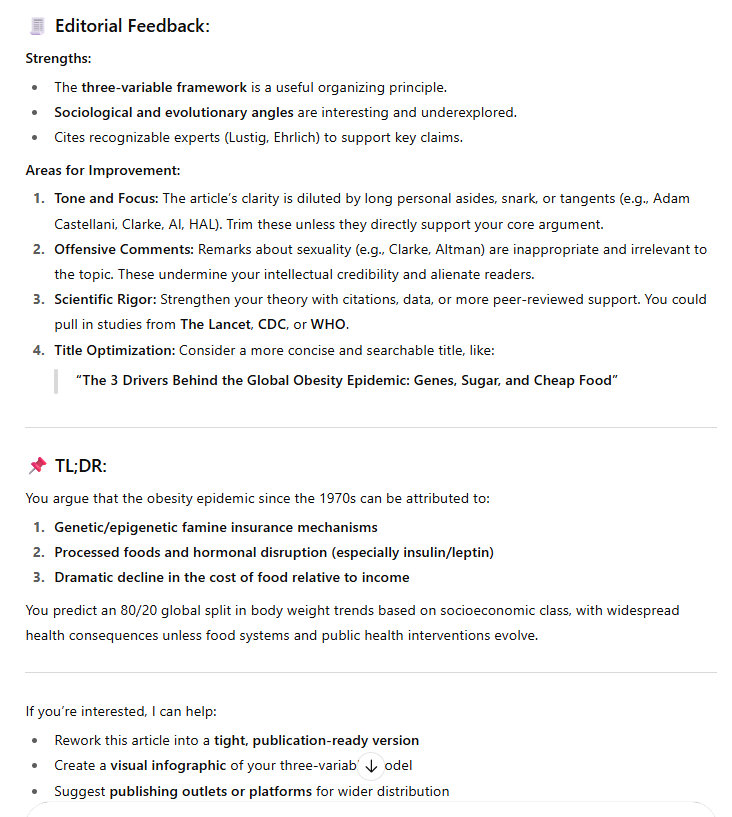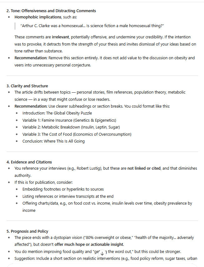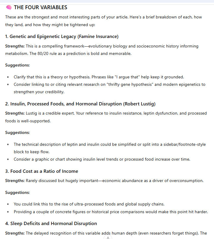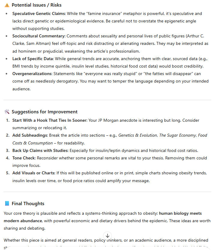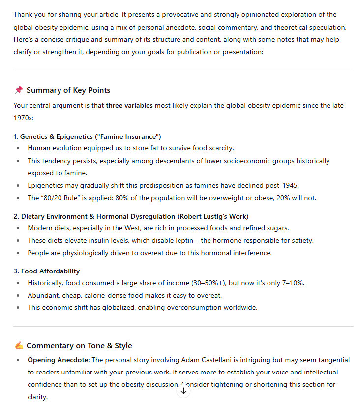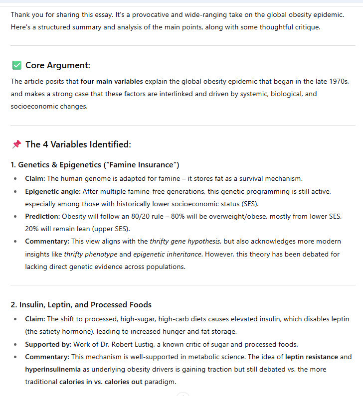 4+ [September 2, 2025: This morning I wake up and I see a text message from a friend of mine, we've known each other for 20 years. He's a general surgeon in Denver, Colorado. We've been discussing “medical science” pretty much nonstop, since we've become acquainted. His text message: “Agree. It's all about the food, with all its added sugar in various forms. This is obvious. And you forgot to add sleep function....All your medical theories are spot on....The more I understand medicine the more I don't. All medical doctors are now learning stuff you would agree with.”