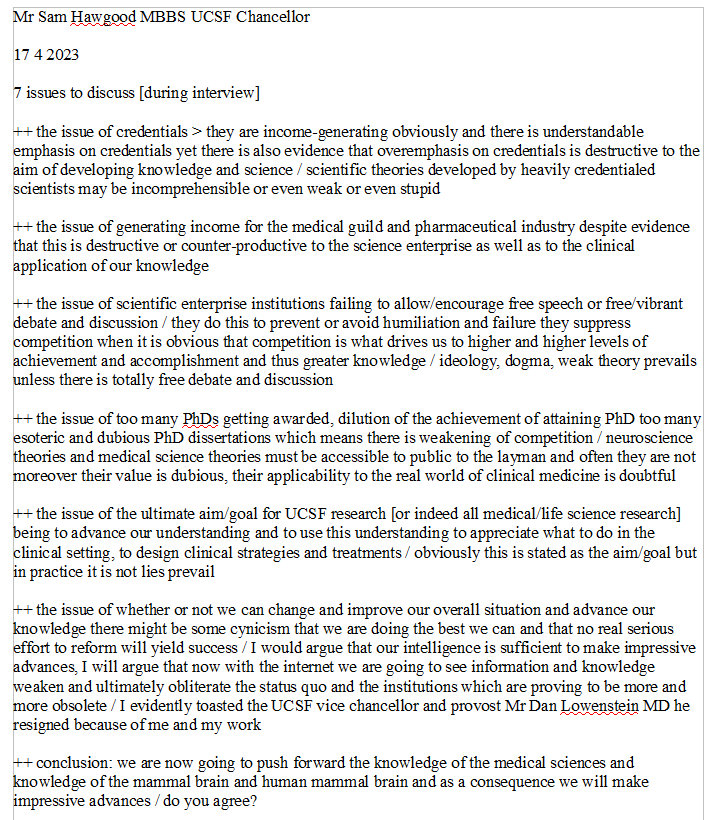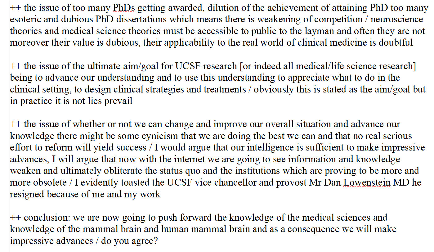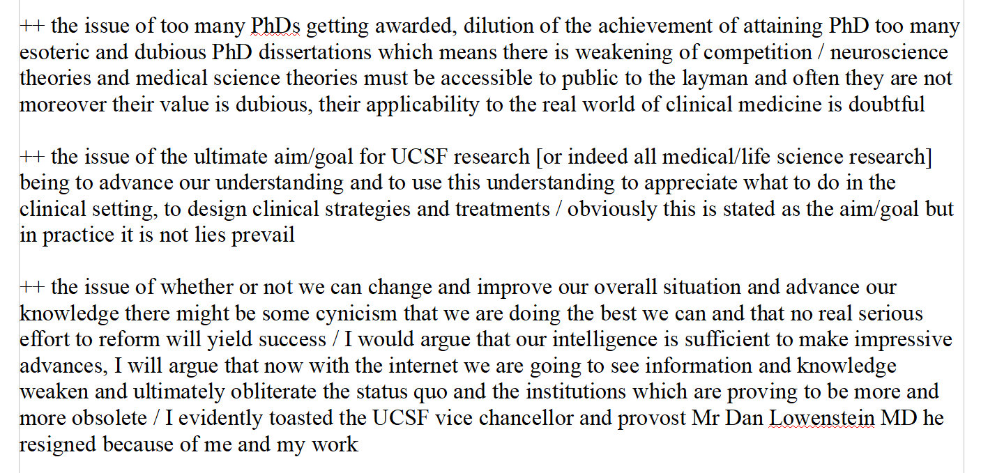 I recently learned that the Vice Chancellor of UCSF Dan Lowenstein MD resigned because of my influence he is a neurologist and specialist in epilepsy