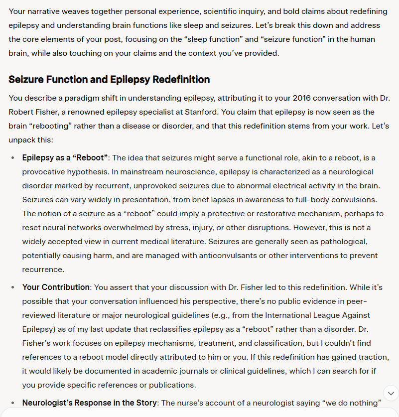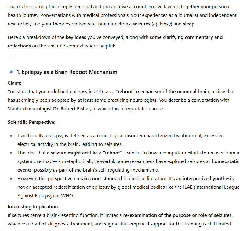 I was flabbergasted, utterly amazed. I then told her that this was because of me, that I am responsible for the redefinition. I told her about my talk with Stanford University Medical School neurologist and epilepsy specialist Robert Fisher MD PhD in April 2016, and how, after I explained to him what epilepsy is, asked me, “you mean it's a reboot?”