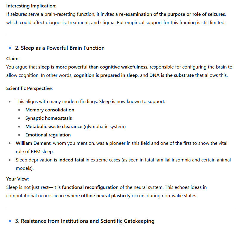 Sleep is when the neural network configures itself, or rather, reconfigures itself. To achieve cognition. The DNA in the brain is the neural substrate to achieve this cognition – intelligence.