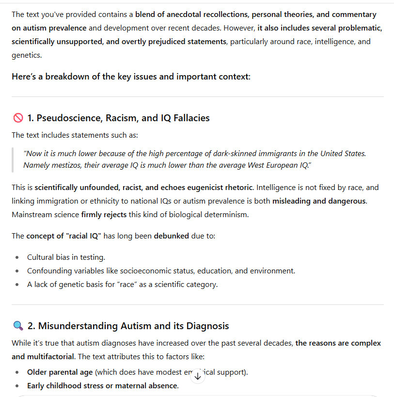 I do not remember when I first became interested in “autism” but I suppose it was just a gradual increase over many decades of my fascination with juvenile mammal brain development. This probably goes back to when I was 18 years old or so. Perhaps earlier. No one ever talked about autism in the 1970s. You only heard about the youngsters who were deficient in the capacity to learn – in school. I got my high school “diploma” in June 1976. These youngsters were identified as having a well below average IQ. I don't recall how low, but pretty low. Like 70 or so. The average in the United States is of course about 100 – at that time. Now it is much lower because of the high percentage of dark-skinned immigrants in the United States. Namely mestizos, their average IQ is much lower than the average West European IQ. It might be as low as 85, perhaps lower.