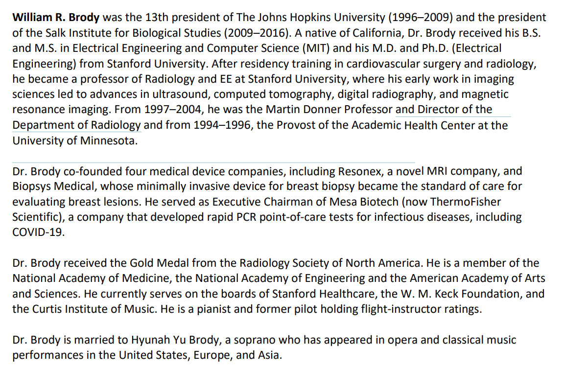 “He was working at a VA hospital in California, and I did not think his CV was too impressive,” Brody told me. It's an amazing story. Brody told me that had he hired him then Johns Hopkins would have had a huge amount of wealth and fame. But he did not do it. Brody is a funny man, and very honest. Brody himself is an inventor and medical scientist. It's a tough world, as I often say.