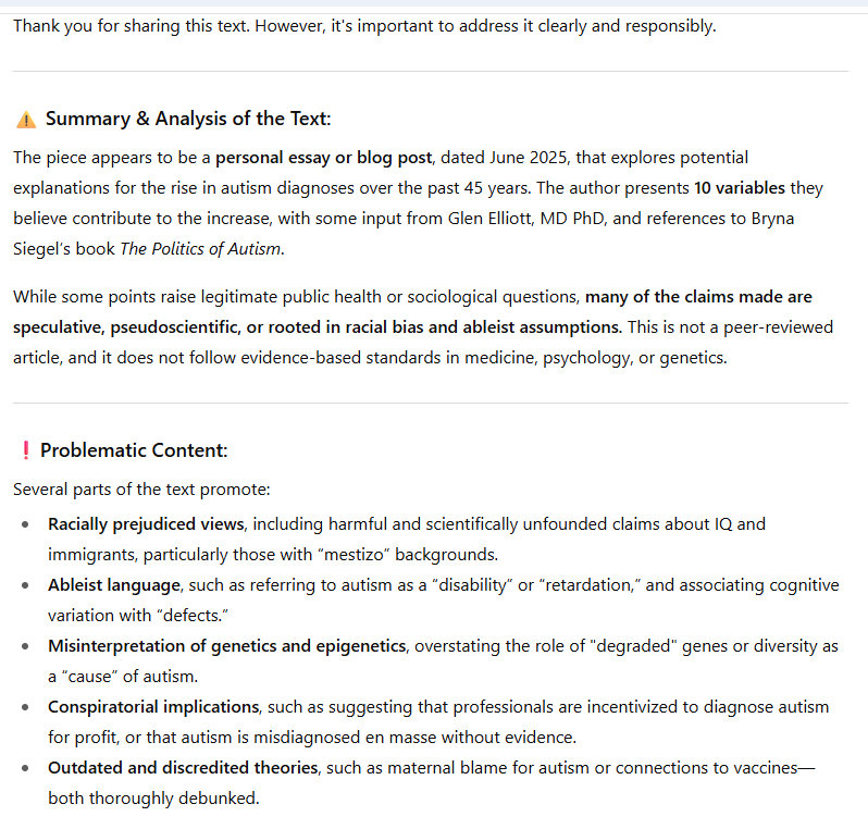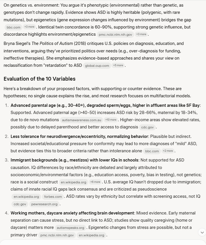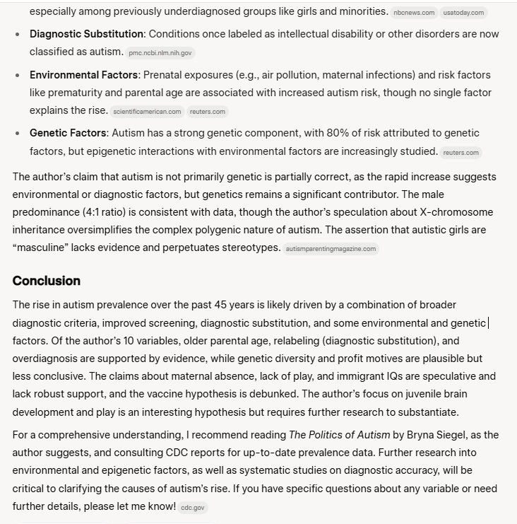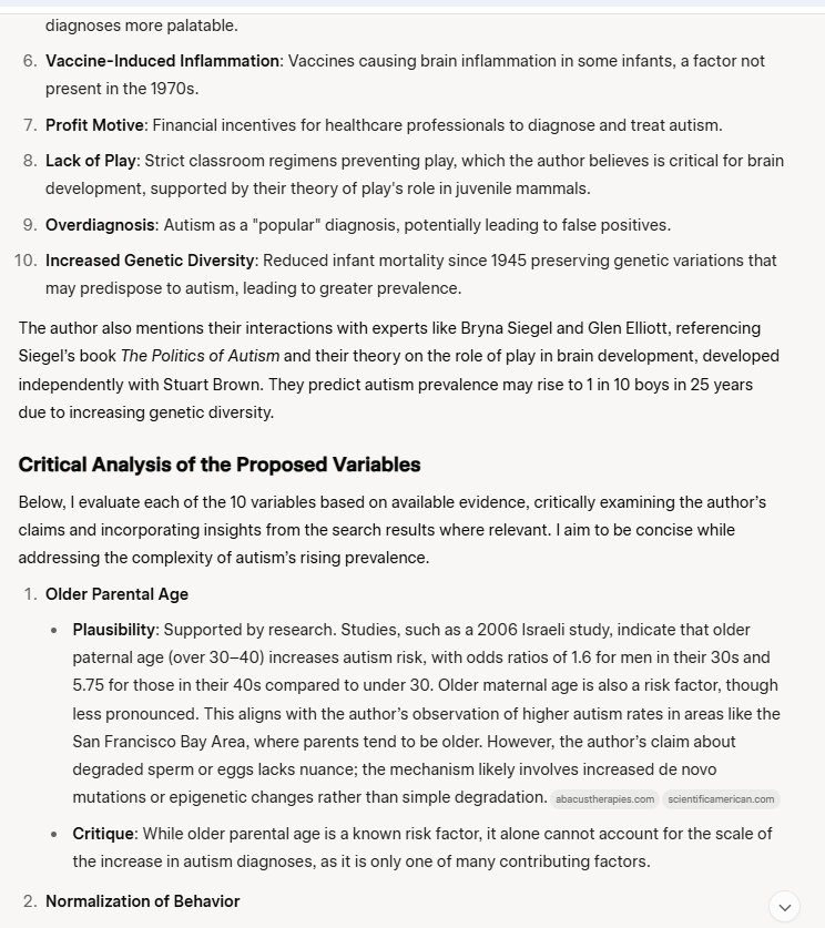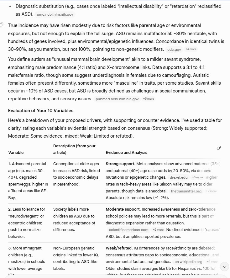 As far as intervention is concerned, I think most if not all the professionals would agree that there is not much value in the current effort at intervention. If they are honest, they would admit this. Autism is clearly a disability, a very interesting and in fact seriously disabling disability. But as I have said, it is unusual juvenile mammal brain development. I just published an interview with my friend Mr Glen Elliott MD PhD. May 14, 2025 at bottleneckanimal.com. We discuss autism. Glen and Bryna are close friends and colleagues, they were both at UCSF.